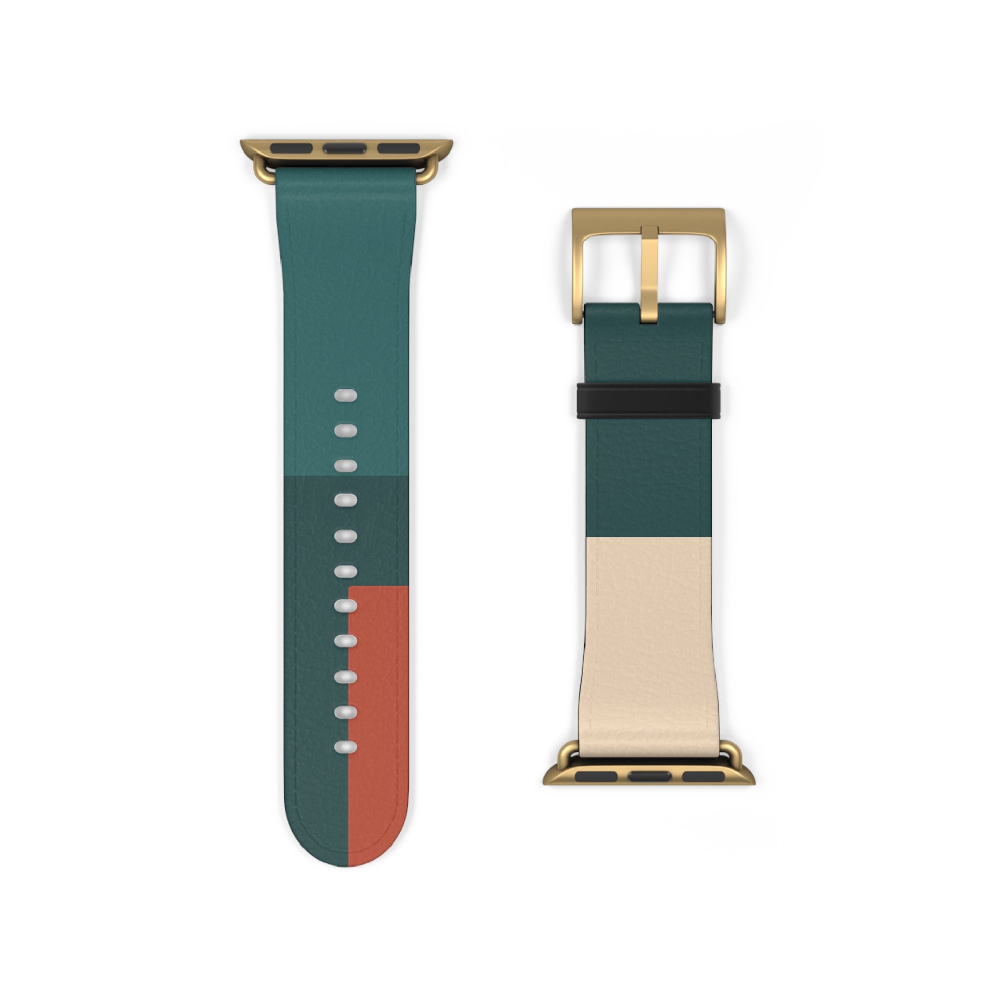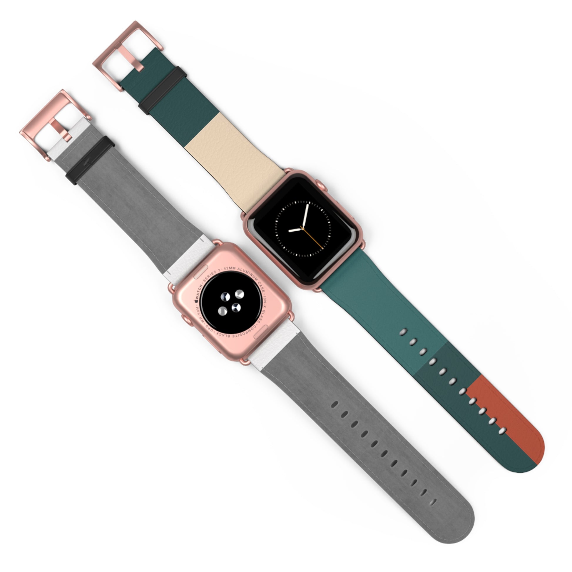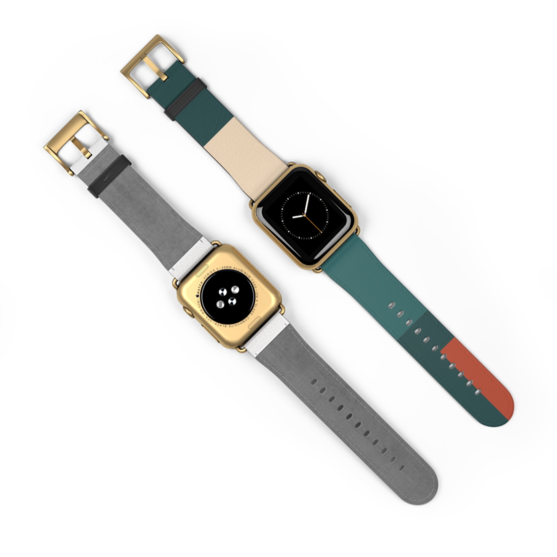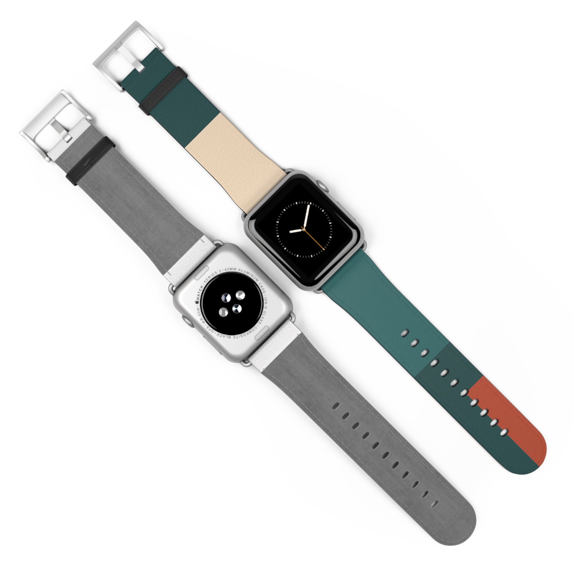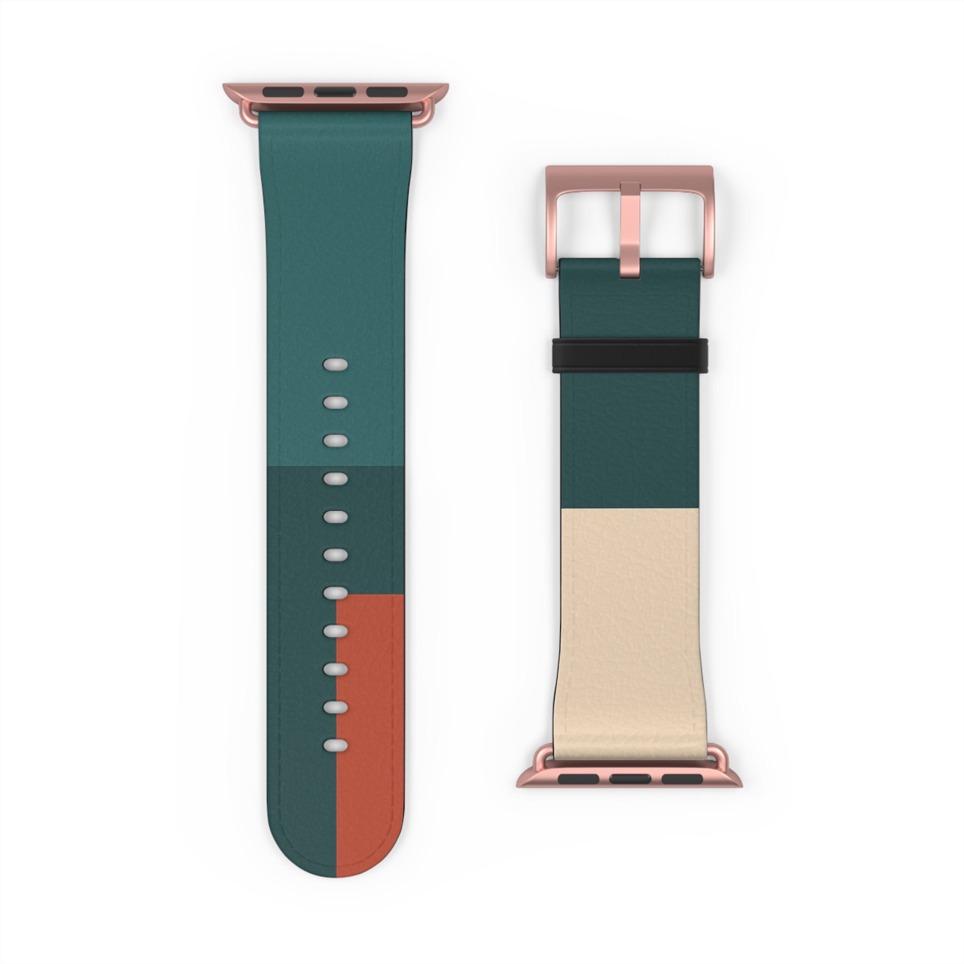 A refined take on color theory and composition, the “Shifting Fields” strap features bold, clean color blocks in muted teal, ochre, ivory, and terracotta. Each section is placed with intention—inviting the eye to travel across the strap like a modernist canvas.